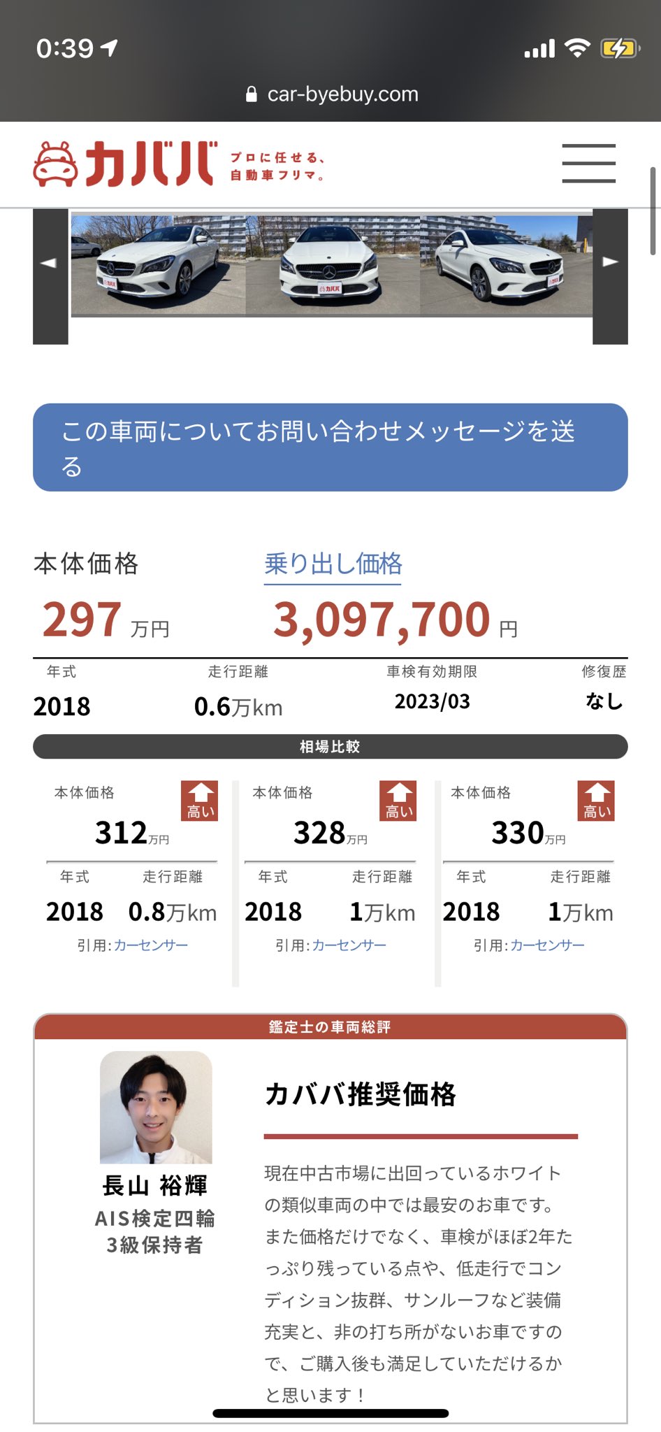 | カババで車を買った人 | 相場より安く買える場合がある 優良な車両が多く出品されている 個人売買で購入するよりも安心した取引ができる | |
