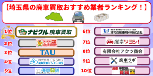 上記は埼玉県内でおすすめの車買取専門店をランキング形式にしたものです。