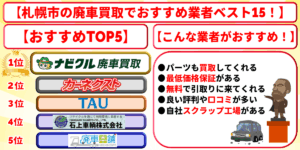 札幌市の車買取業者おすすめランキング16選!評判や口コミが良いのどこ?