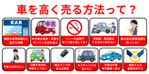 なお、下記の関連記事では車を高く売る方法を、「基礎」「事前準備」「時期の見極め」「交渉術」の4項目に分けて解説していますので、滋賀県で車の高価買取を目指したい方は併せてチェックをしてください↓↓