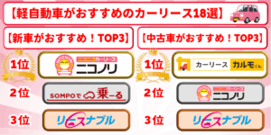 下記の記事では軽自動車のおすすめカーリース(サブスク)をご紹介していますので、興味がある方は併せてチェックされることをおすすめします↓↓