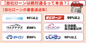 なお、残クレ・ローン・カーリースの審査に通らない場合は、審査通過率が平均90%オーバーの「自社ローン」のご利用を検討してみるのもおすすめです。